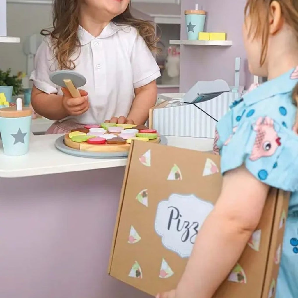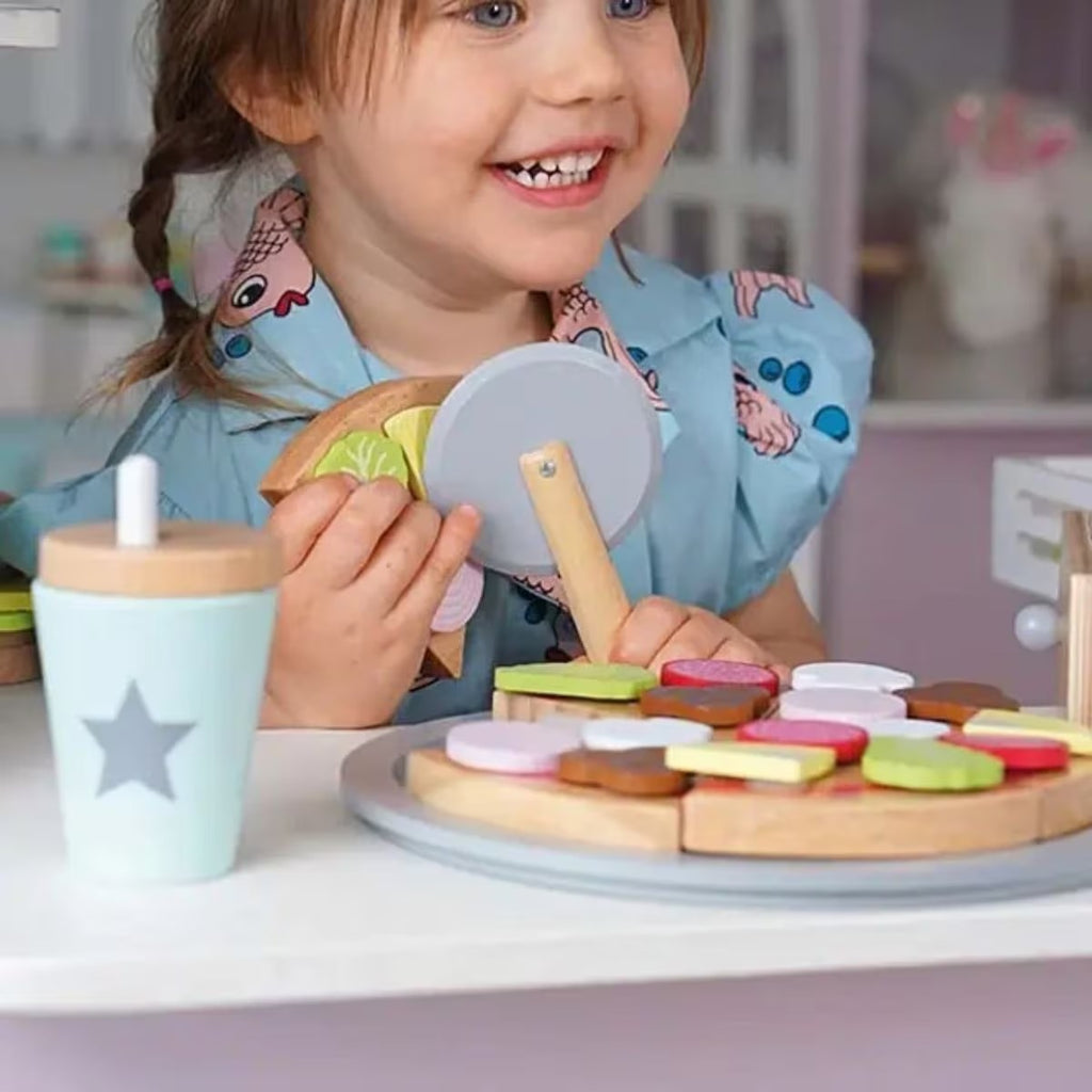 Pizza time! The weekend is coming and what's better than homemade pizza? Invite your friends over for this fantastic pizza! Our pizza will make your evening extra fun! The pizza toppings are easy to attach with Velcro strips. All 6 pizza pieces are held together with Velcro and are easy to cut with a pizza cutter. Made from FSC™ certified wood (FSC™ C194598).
