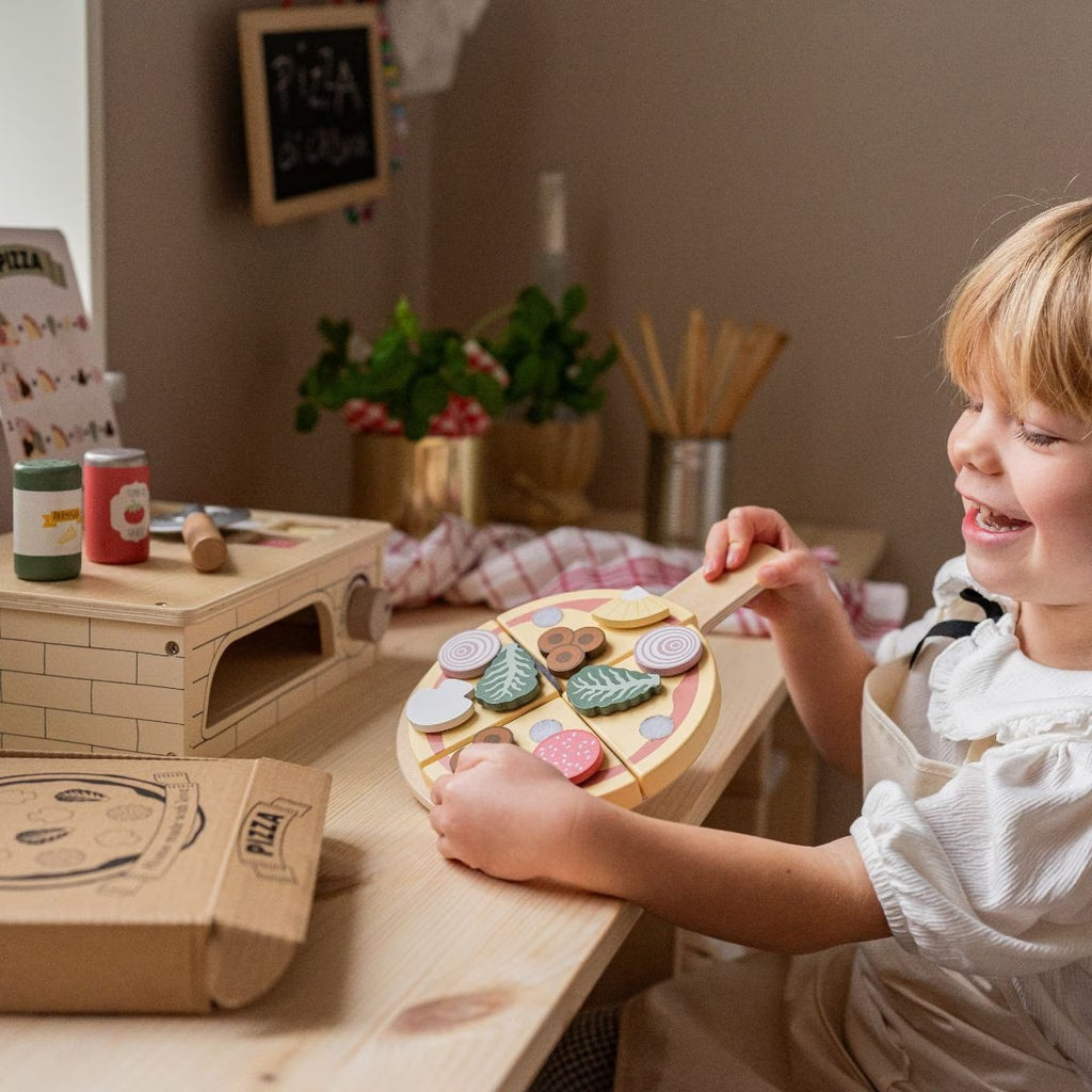 Pizza party! Jabadabado's wooden pizza oven is the perfect toy for any little pizza maker. It includes a large selection of different ingredients so your child can make their very own favorite pizza. The toppings are easily attached to the pizza with velcro. Serve this imaginative pizza just the way you want it with all the tasty accessories or follow the receipt from the included menu card. With a realistic design, your child will have hours of creative play and be encouraged to try out different flavor combinations and prepare food.