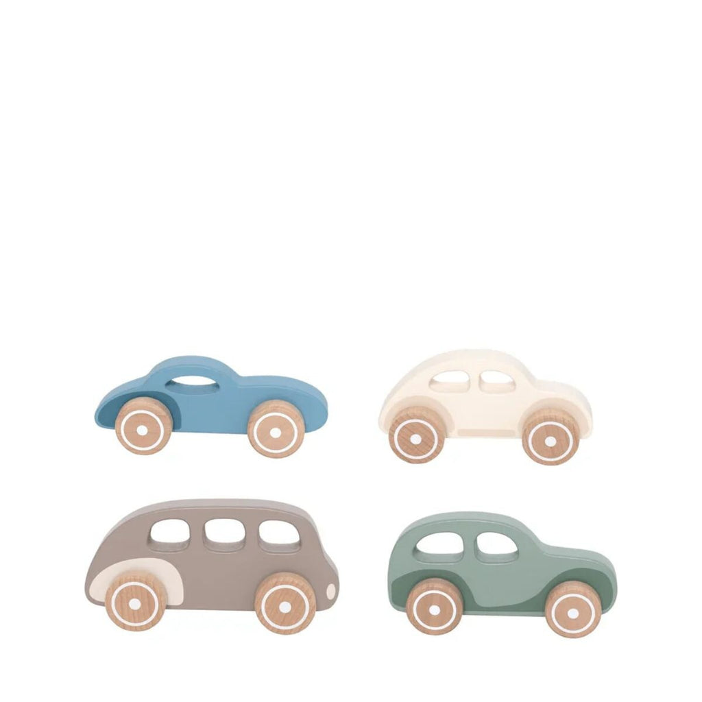 Let's race. With four cars in lovely natural colours, you can challenge your friends and decide who is the fastest. The cars are equipped with sturdy wheels for easy movement and come in four different variations for versatile play.