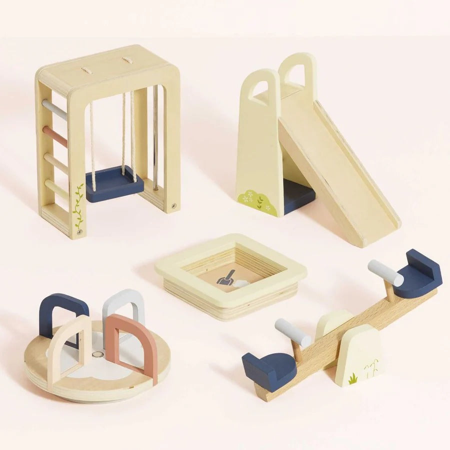 Introducing the perfect addition to a dolls house or a standalone playtime adventure - the Wooden Dolls Outdoors Play Set!