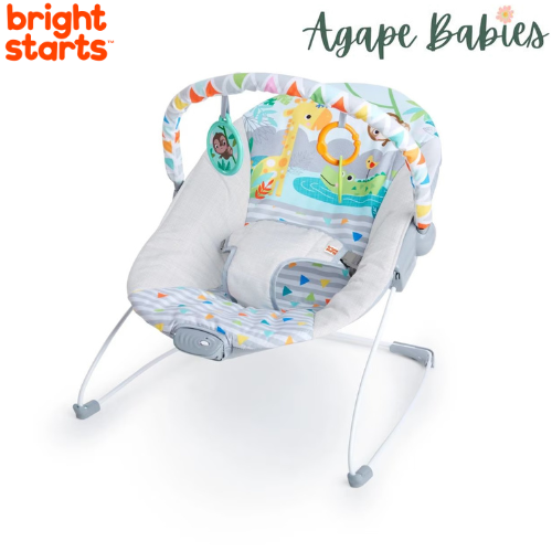 Journey into a jungle of comfort and cuddles with this Bright Starts baby seat. From safari adventures to afternoon snuggles, the bouncy seat helps your wild one relax with soothing motions and vibrations. Your baby will switch from cranky to cooing as he kicks and reaches for the 2 toys hanging above. Baby is safe and secure with the 3 point harness and nonslip feet. With your little newborn monkey in his new favorite baby bouncer, you can take a seat too with baby in view.