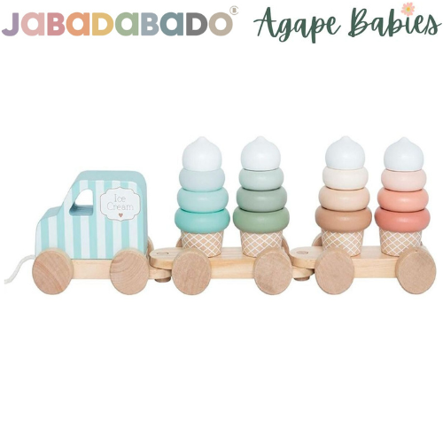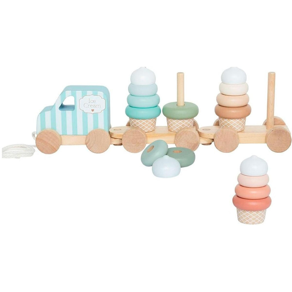 Say hello to a world of icy adventures! With our cute pull-along ice cream truck, children can create their own ice cream dream. Stack, build, and pull it around. This ice cream truck is ready to roll into any imaginative adventure, whether it's a pretend ice cream stand or a picnic in the playroom. Children can develop motor skills and creativity while stacking and serving their favorite flavors! Perfect for little hands and big dreams – who wants some ice cream? 4x stackable ice cream cones in pastel colors, 1x pull-along trailer with string.