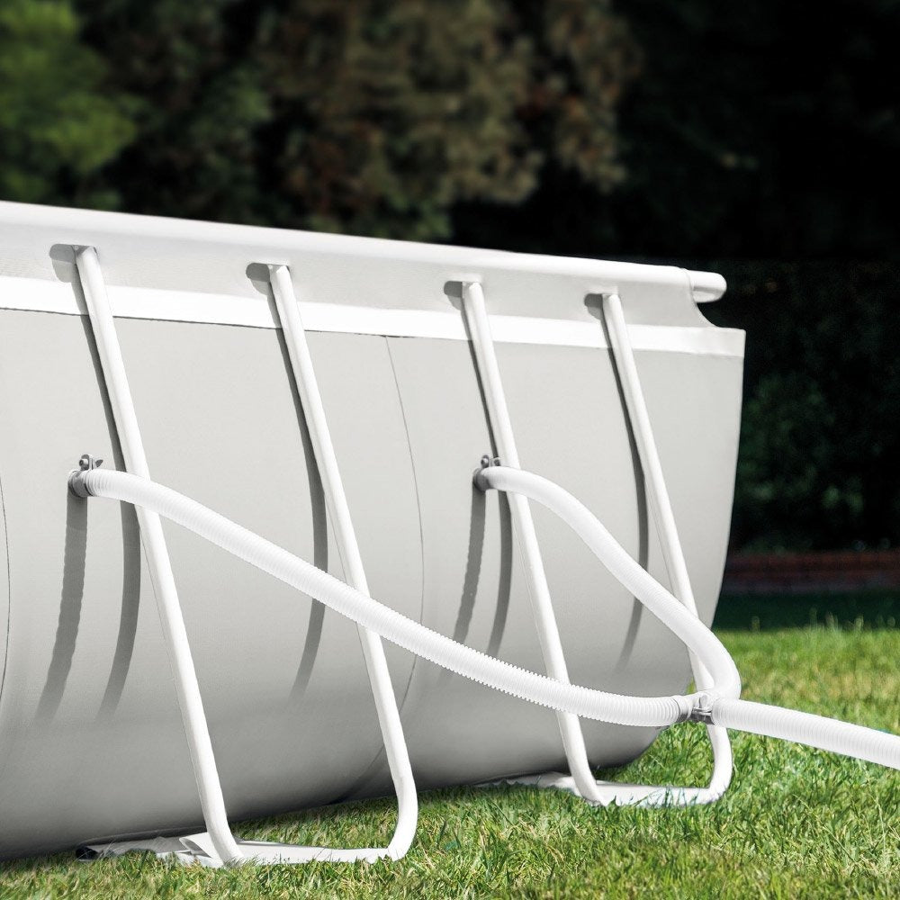 The Intex® Prism Frame™ 4m x 2m x 1.22m above ground pool is designed to fit any backyard. Built to provide extra swimming space, it holds more pool water than traditional round frame pools, allowing swimmers to appreciate the maximised swimming area.