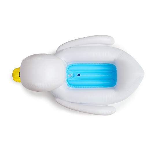 The textured non-slip surface keeps baby secure, and the convenient inflatable design is padded, creating a safe and comfy environment for baby to splash around in. There's a drain so you can empty the bath easily without any heavy lifting. And because this swan-shaped bathtub deflates and folds compact, it's perfect for use as a travel tub, too. Inflated bathtub measures 27" by 24.5".