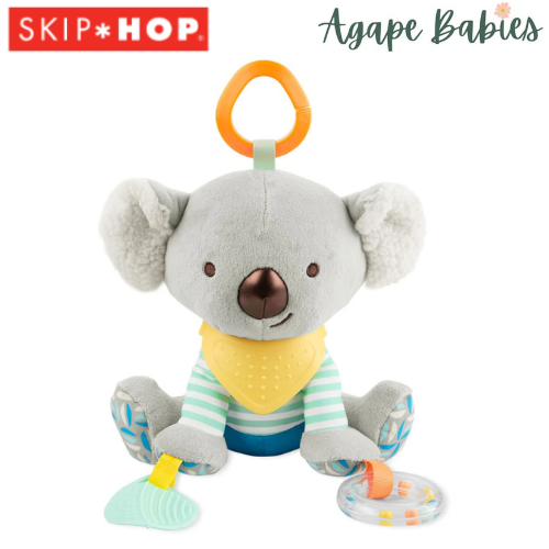 - Skip Hop Zoo plush characters featuring a textured surface bandana teething toy
