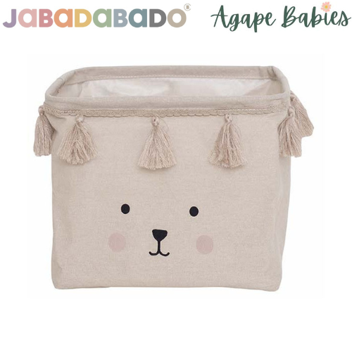 Keep the children’s room in order with this stylish and practical storage basket in textile. The storage basket is also equally good to use in the hall for the children’s own storage of scarves, hats and gloves. It can also become a nice interior item for the children’s room and can be conveniently matched with our cloth bunting to complete the theme. This product is in some part manufactured from recycled material and the colour of the textiles may therefore vary slightly. On one side of the basket ther is a cute face of a teddy. The storage basket is adorned with tassels all around.