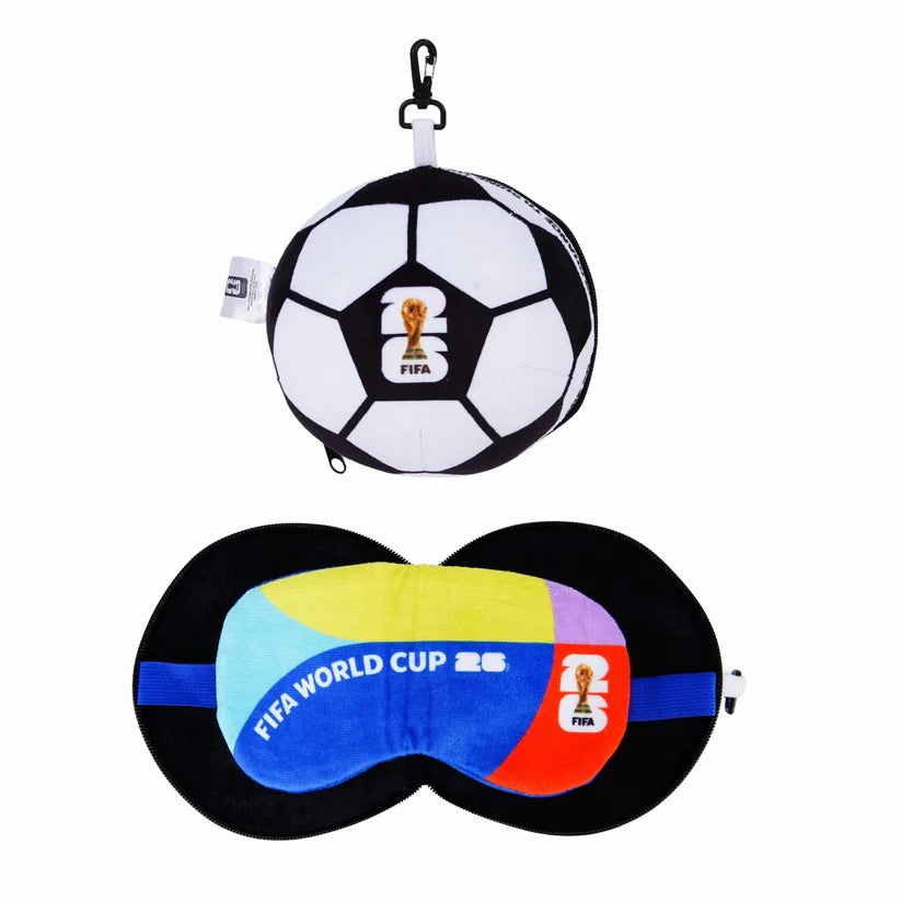 This Officially Licensed FIFA World Cup 2026 Ball-Shaped Pillow & Eye Mask Set is specially designed for football fans. It can be used as a decoration, a neck pillow, and an eye mask during travel. It is the perfect multifunctional travel neck pillow for your trips, suitable for both adults and children. Made from high-quality polyester and spandex.