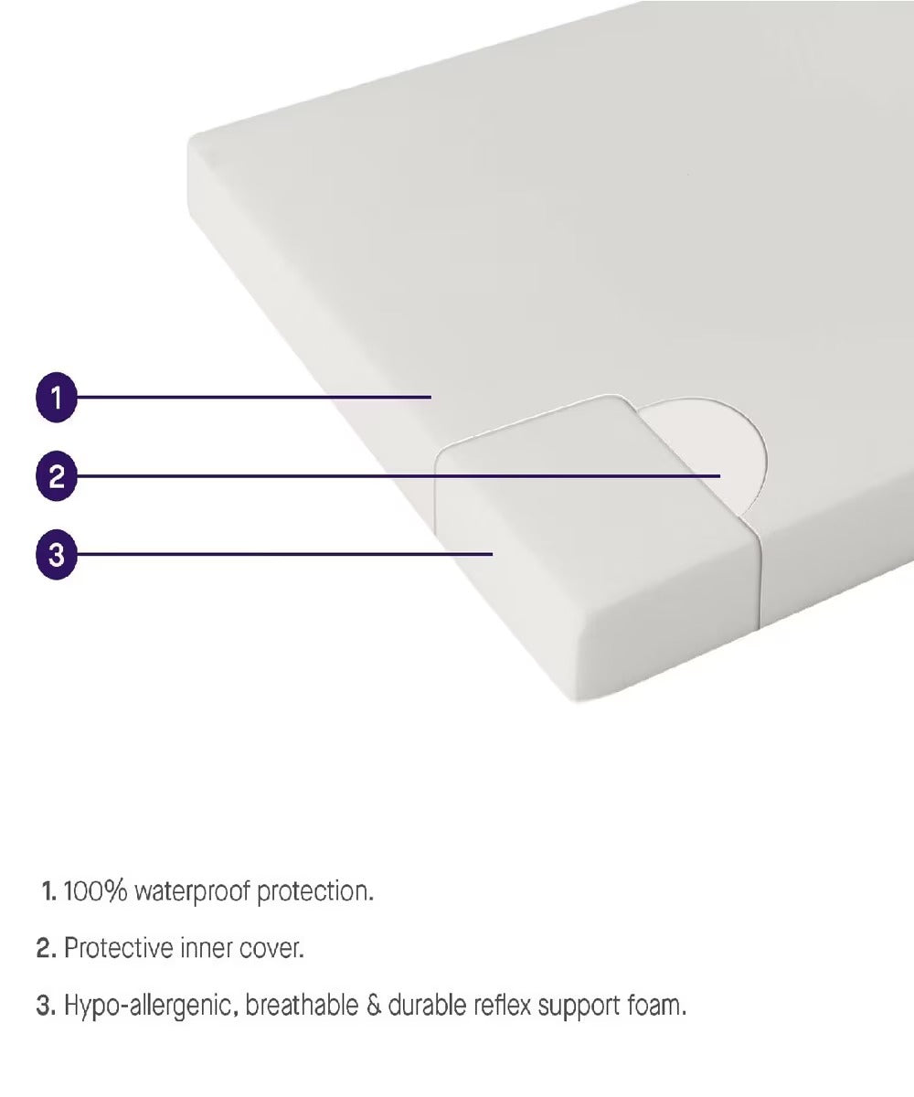 Asthma and allergies can be common in young children and make for a really uncomfortable night’s sleep, so choosing the right safe mattress is important. Our Anti-Allergy mattress has a super-efficient anti-fungal and anti-mite barrier and a 100% waterproof layer to keep out any bugs or dust and keep your mattress completely dry, in case of any unexpected spills or leaks. Combined with our naturally hypo-allergenic reflex support foam with breathable core, it gives peace of mind at bedtime.