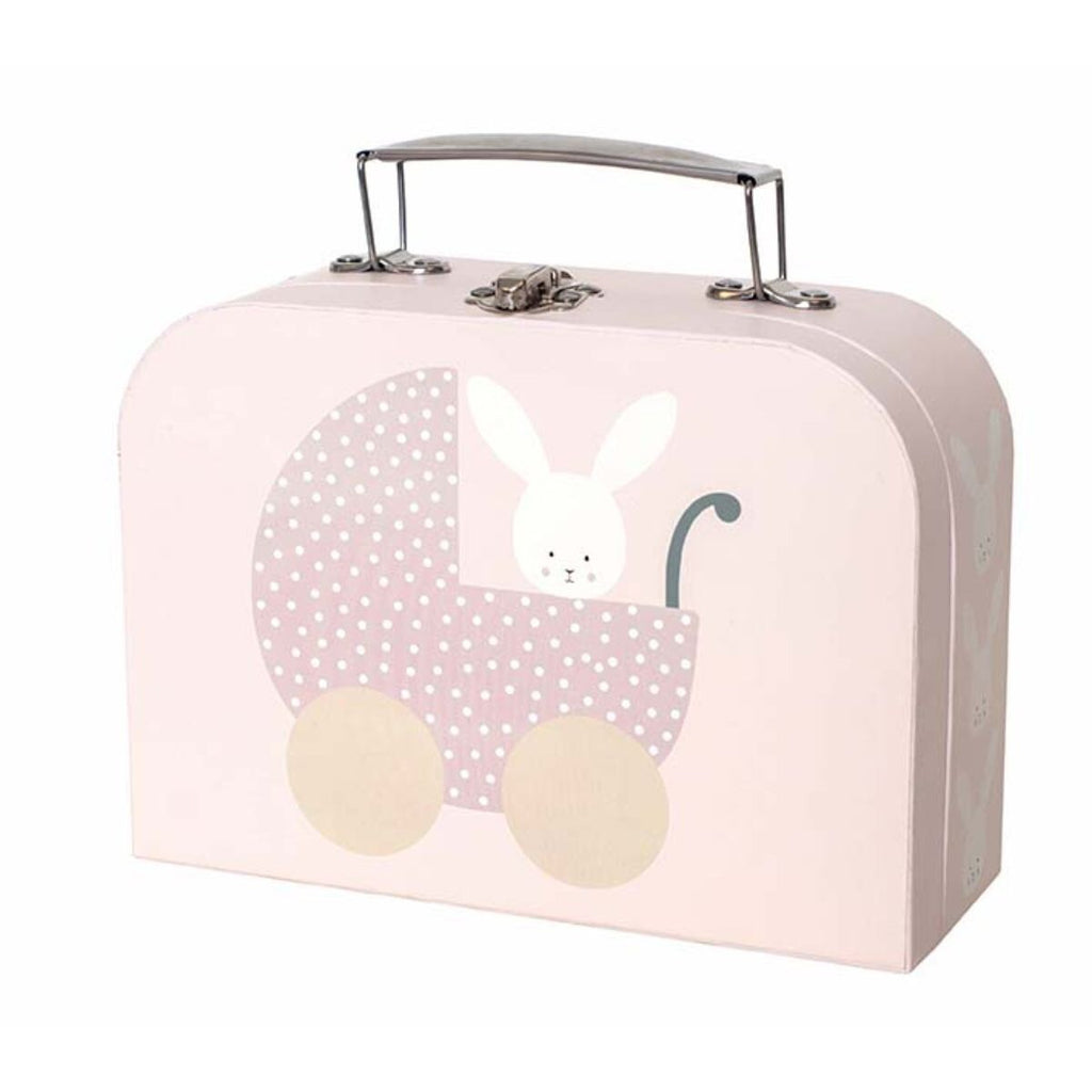 Cute baby bag with a cute Bunny for all small children who like animals. The Bunny comes in a practical cardboard bag in pink with a lot of fun accessories. Now you can take care of your little Bunny almost as if it were a real little baby. You can put on the bib and feed it with gruel and then maybe change the diaper. When it's time for the little Bunny to sleep, there is a cute pacifier that helps it sleep extra well.