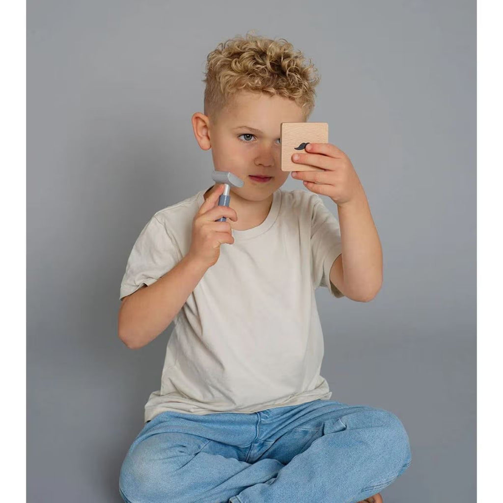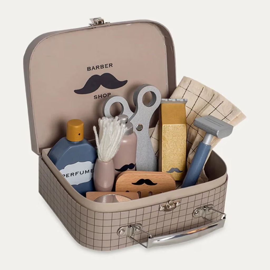 Finally, you can open your own barbershop at home with our cool barber bag. Style the perfect beard with comb, scissors, trimmer and razor which of course is complemented by shaving foam and shaving brush. Check out the perfect result in the included mirror. Of course, the treatment ends with a little luxurious perfume. Encourages creative playing.