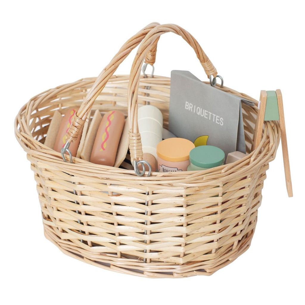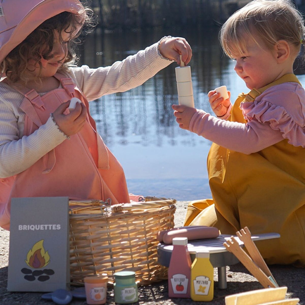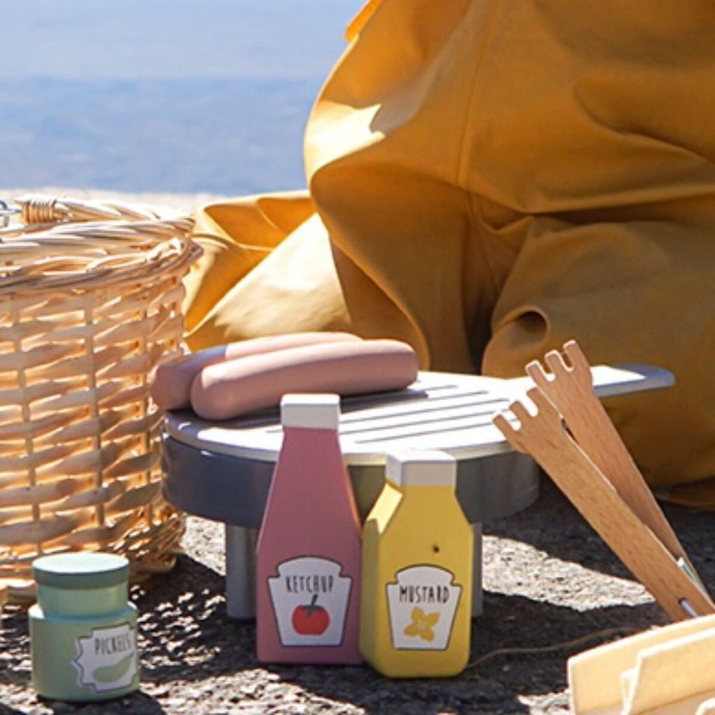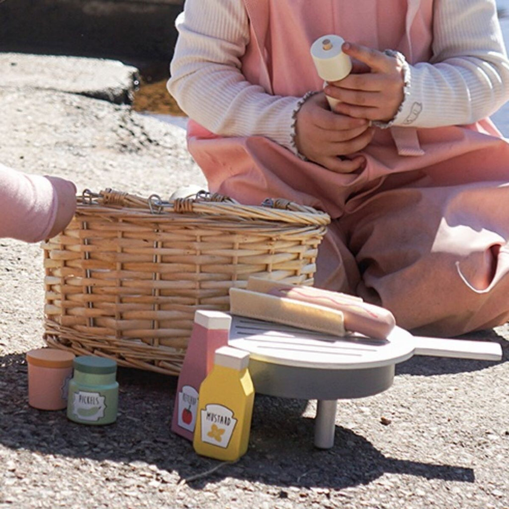 Now you can finally go out into the forest and have a barbeque with your friends. Our BBQ basket includes everything for a successful barbecue. So pack your bag and head to the forest right away. When you get hungry it is time to start the grill. How about a hot dog with boston cucumber and roasted onions. For those who want there is ketchup and mustard to add on top. After the meal it is time for some grilled marshmallow. Yummy!