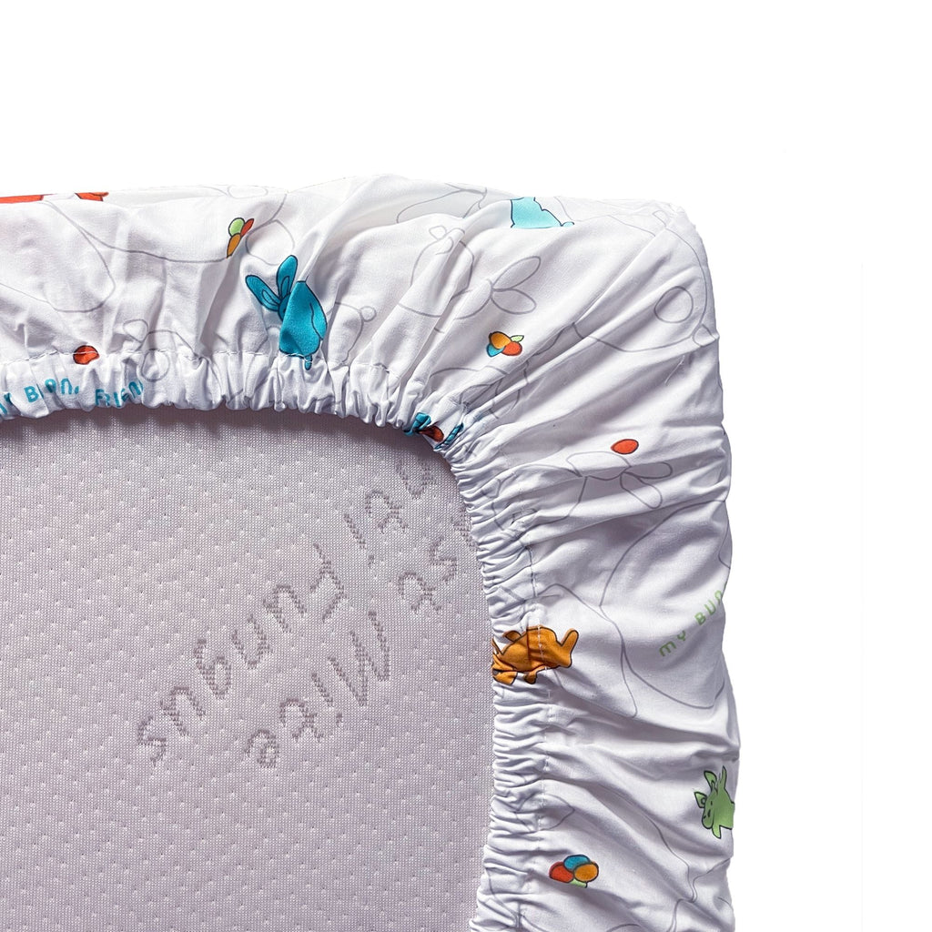 It's designed with basic motifs in a repetitive format that benefits baby during tummy-time in cot, and develops baby’s focusing skill with bigger motifs... Indulge in My Bunny Friend's high quality 100% pure cotton range that offers all your favourite bedding coordinates. It is also washable!