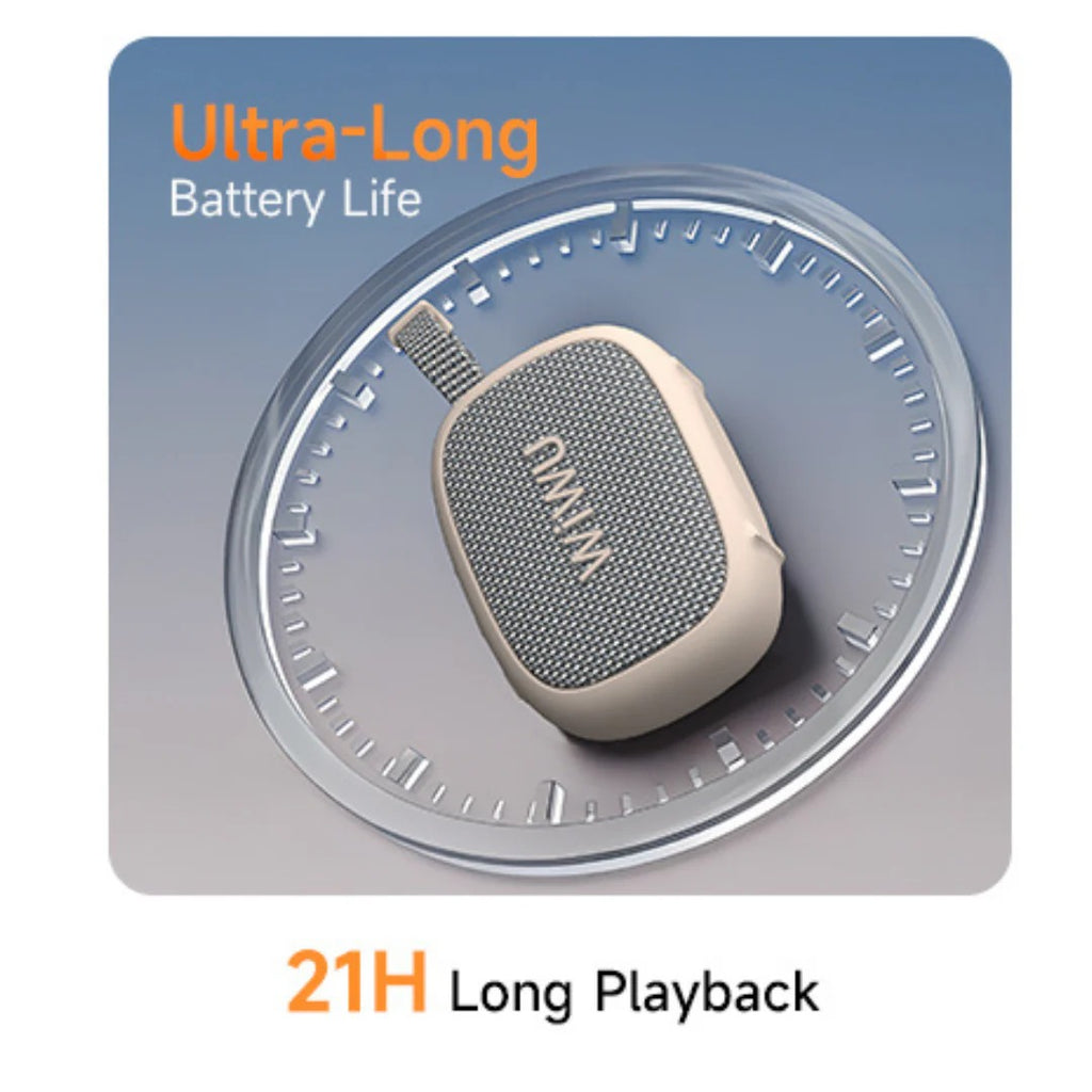 Experience 21H of rich sound with the WiWU GO Fun Bluetooth speaker – IPX6 waterproof, Bluetooth 5.4, magnetic base, USB-C fast charging & dual-color design.